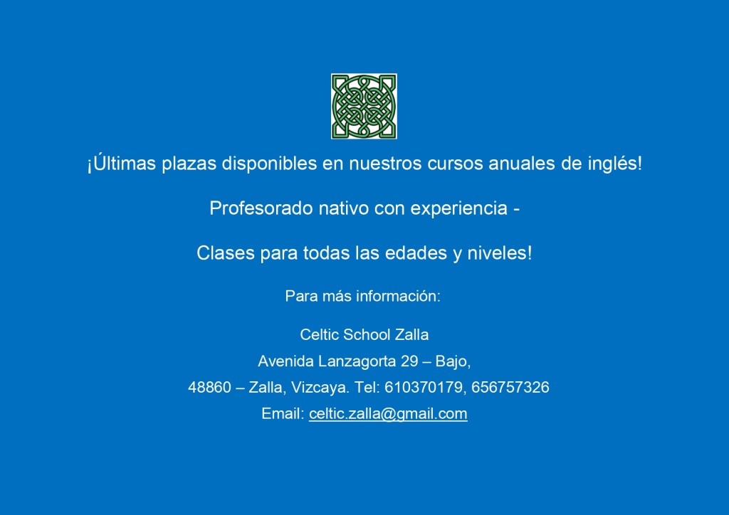 Learn English with us! Don’t miss your chance! Posted on September 19, 2022June 27, 2024 by admin Matricula abierta para las últimas plazas en nuestros cursos anuales 2024 – 2025. Share this: Click to share on X (Opens in new window) X Click to share on Facebook (Opens in new window) Facebook Like Loading... Related